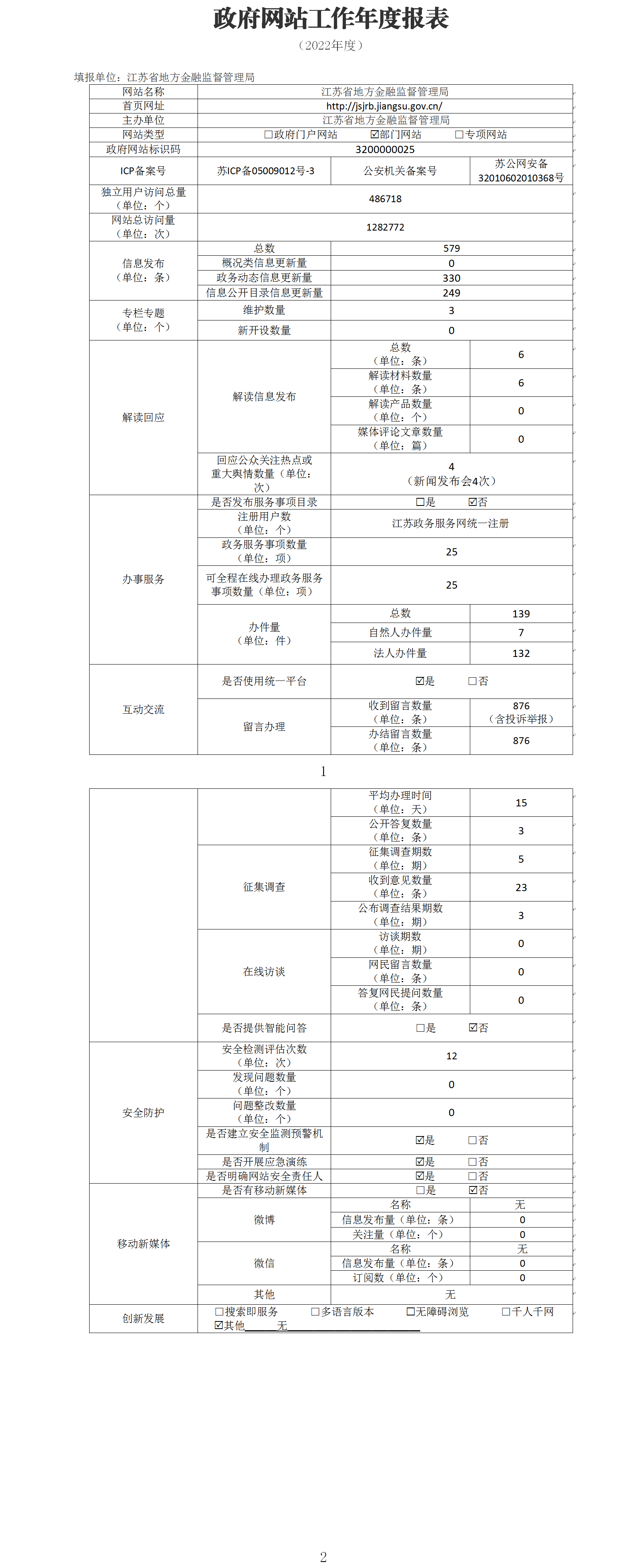 政府网站工作年度报表(2022年)